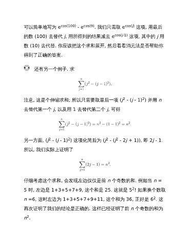 可以简单地写为 e cos(100) - e cos(9) . 我们只需取 e cos(j) 这项, 用最后