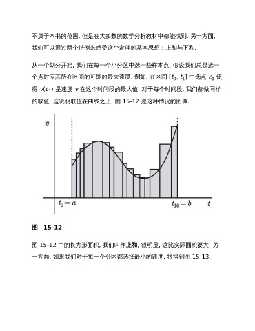 图 15-12 中的长方形面积, 我们叫作上和, 很明显, 这比实际面积要大. 另