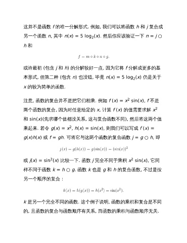 样不同于函数 k = h ○ g. 函数 k 也是 g 和 h 的复合函数, 不过是按