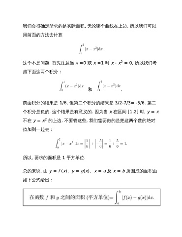 我们会很确定所求的是实际面积, 无论哪个曲线在上边. 所以我们可以