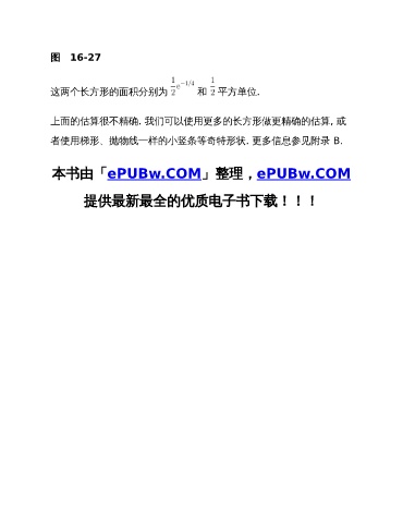 图 16-27 这两个长方形的面积分别为 和 平方单位. 上面的估算很不精确. 我们可以使用更多的长方形做更精确的估算, 或 者使用梯形、抛物线一样的小竖条等奇特形状. 更多信息参见附录 B. 本书由「ePUBw.COM」整理,ePUBw.COM 提供最新最全的优质电子书下载!!!