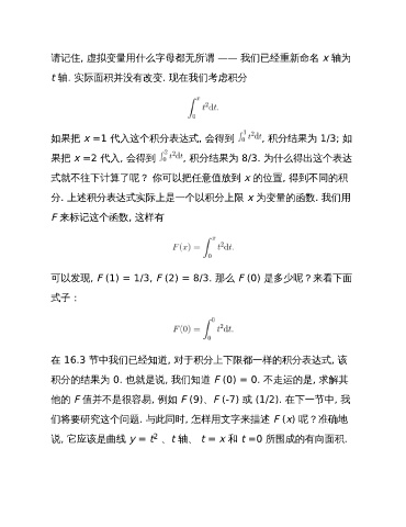 说, 它应该是曲线 y = t 、t 轴、 t = x 和 t =0 所围成的有向面积.