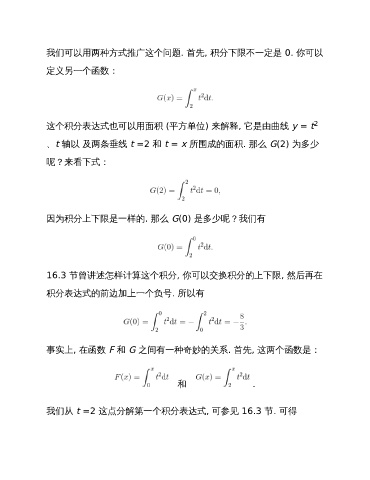 我们可以用两种方式推广这个问题. 首先, 积分下限不一定是 0. 你可以