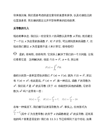 x . 我们说 F 是 x 的反导数 (关于 x). 你能想到其他的函数, 它的导