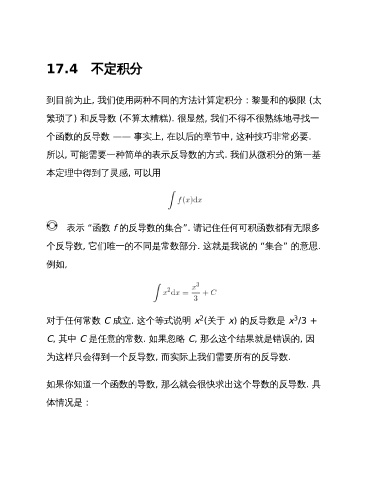 表示 “函数 f 的反导数的集合”. 请记住任何可积函数都有无限多