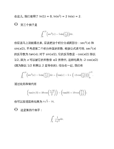 在这儿, 我们使用了 ln(1) = 0, ln(e ) = 2 ln(e) = 2.