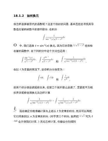 中, 我们选择 t = sin (x) 换元, 因为它的导数 也恰恰