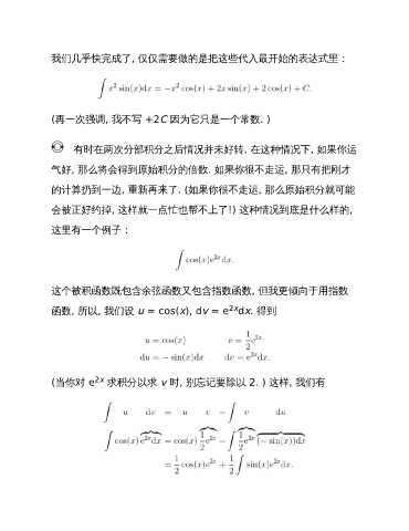 有时在两次分部积分之后情况并未好转. 在这种情况下, 如果你运