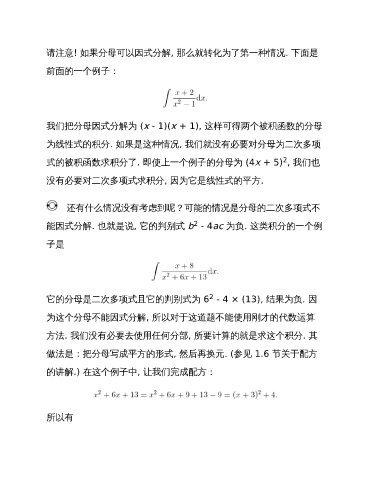 能因式分解. 也就是说, 它的判别式 b - 4ac 为负. 这类积分的一个例