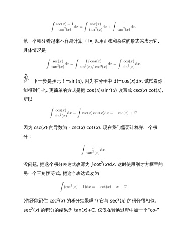 能得到什么. 更简单的方式是把 cos(x)/sin (x) 改写成 csc(x) cot(x),