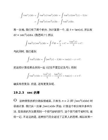 再一次地, 我们有了两个积分. 为计算第一个, 设 t = tan(x), 所以有