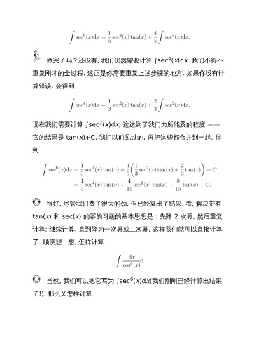 做完了吗?还没有, 我们仍然需要计算 ∫sec (x)dx. 我们不得不