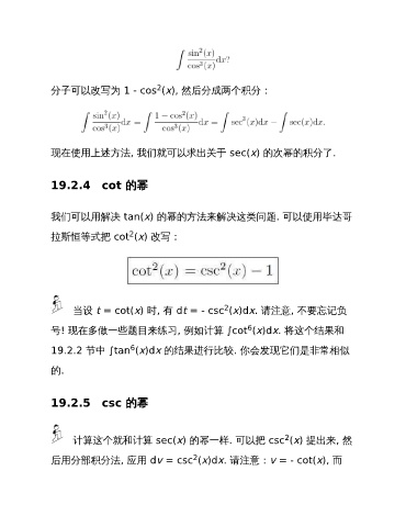 我们可以用解决 tan(x) 的幂的方法来解决这类问题. 可以使用毕达哥