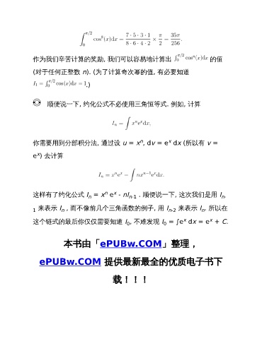 这样有了约化公式 I = x e - nI n-1 . 顺便说一下, 这次我们是用 I n-
