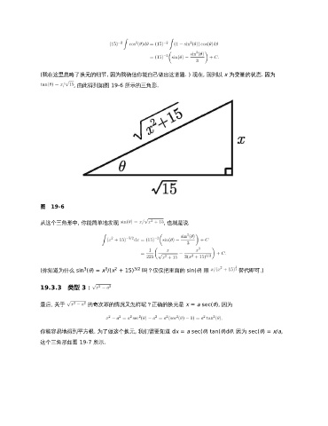 你能容易地得到平方根. 为了做这个换元, 我们需要知道 dx = a sec(θ) tan(θ)dθ. 因为 sec(θ) = x/a,