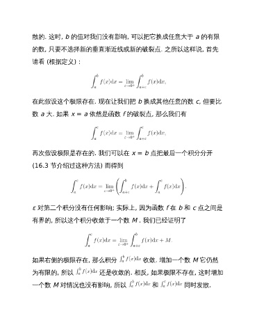 ε 对第二个积分没有任何影响; 实际上, 因为函数 f 在 b 和 c 点之间是