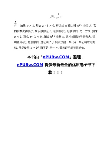 明原始积分是发散的. 这证明了 p 判别法的一半. 另一半证明与此类