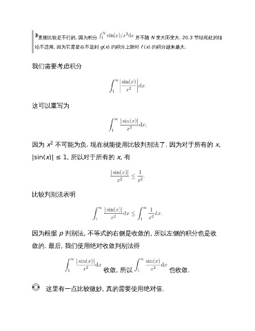 因为 x 不可能为负. 现在就能使用比较判别法了. 因为对于所有的 x,
