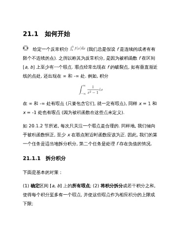(1) 确定区间 [a, b] 上的所有瑕点; (2) 将积分拆分成若干积分之和,