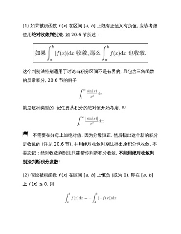 (1) 如果被积函数 f (x) 在区间 [a, b] 上既有正值又有负值, 应该考虑