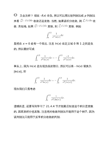 又会怎样? 现在 -f(x) 非负, 所以可以用比较判别法或 p 判别法