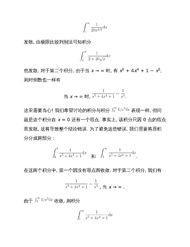也发散. 对于第二个积分, 由于当 x → ∞ 时, 有 x + 4x + 1 ~ x ,