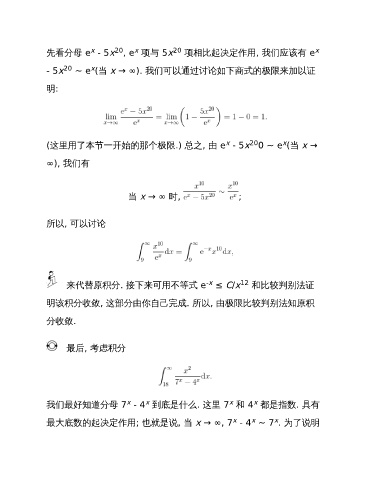 来代替原积分. 接下来可用不等式 e ≤ C/x 和比较判别法证