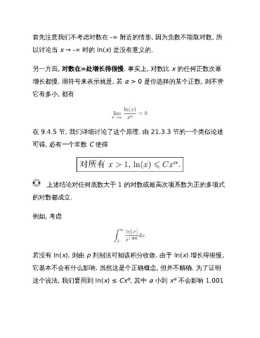 另一方面, 对数在∞处增长得很慢. 事实上, 对数比 x 的任何正数次幂