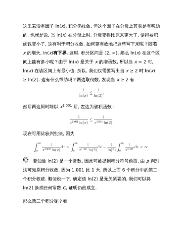 x 的增大, ln(x)有下界. 这时, 积分区间是 [2, ∞), 那么 ln(x) 在这个区