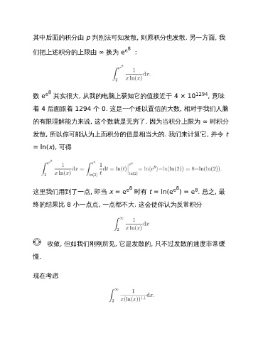 发散, 所以你可能认为上面积分的值是相当大的. 我们来计算它, 并令 t