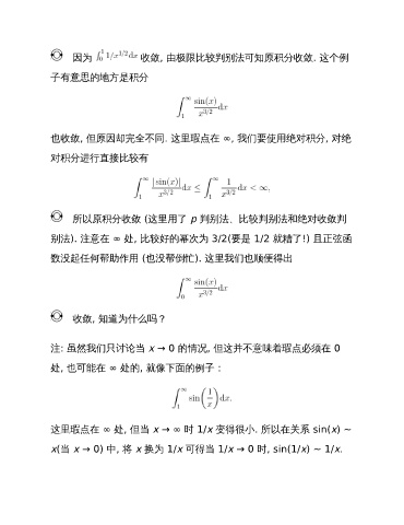 也收敛, 但原因却完全不同. 这里瑕点在 ∞, 我们要使用绝对积分, 对绝
