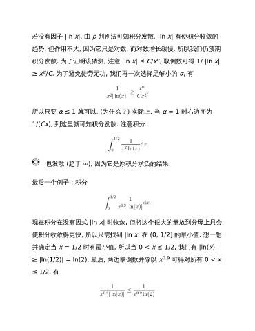 现在积分在没有因式 |ln x| 时收敛, 但将这个很大的量放到分母上只会