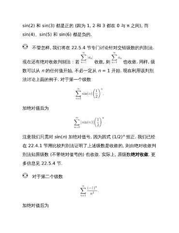 不管怎样, 我们将在 22.5.4 节专门讨论针对交错级数的判别法.
