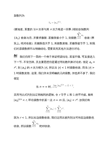 r , 则 |a | 的 n 次方根为 |r|, 所以当 |r| < 1 时级数收敛, 而当 |r| >