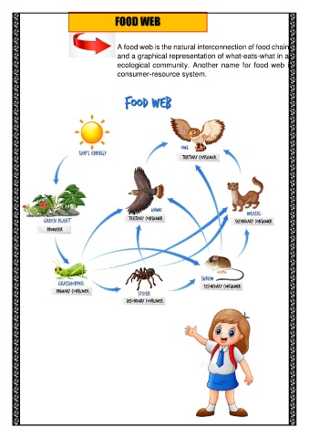 FOOD WEB A food web is the natural interconnection of food chains and a graphical representation of what-eats-what in an ecological community. Another name for food web is consumer-resource system.