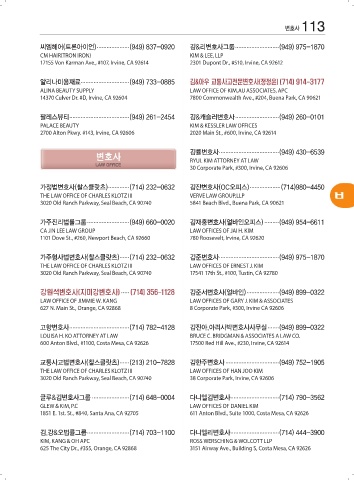 고향변호사 ..................................... (714) 782-4128 김진아,아리사박변호사사무실 ....... (949) 899-0322