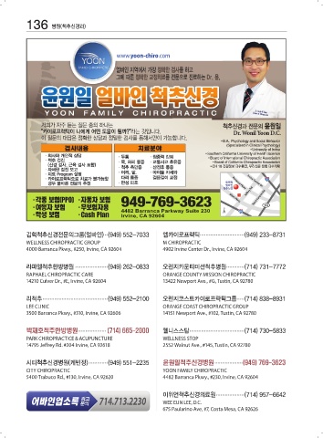 시티척추신경병원(케빈정) ............. (949) 551-2235 윤원일척추신경병원 ................... (949) 769-3623