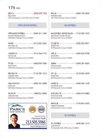 리맥스프리미어부동산 ................... (949) 451-1200 베스트부동산-얼바인/터스틴 ........ (714) 389-2222