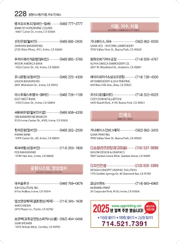 피씨비뱅크(얼바인) ........................ (714) 263-1800 다솜칼라프린팅(광고마을) ......... (714) 537-0099