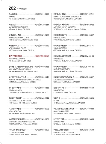 베스트웨이학원 .......................... (949) 698-0358 아이비칼리지SAT학원 ................... (714) 734-8100