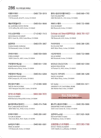 이엠아카데미 ................................. (949) 735-3919 플렉스컬리지프렙(어바인) ............. (949) 668-1765