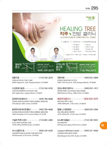 중원한의원(얼바인) ........................ (949) 788-6688 힐링트리클리닉 ........................... (949) 559-3675
