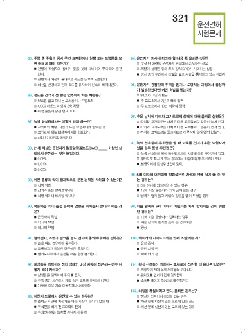 90. 복용하는 약이 운전 능력에 영향을 미치는지 알아야 하는 것 99. 더운 날씨에 6세 이하의 어린이를 차에 방치하는 것이 위법