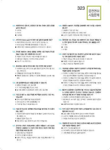 121. 사각지대 (blind spot) 에 대한 다음 설명 중 올바른 것은? 129. 장애인용 인도 진입로 또는 휠체어의 인도 진입로 역할을 하