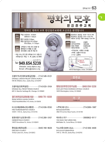 오렌지힐교회(백창호) .................... (714) 633-3104 평화의모후한인천주교회 ........... (949) 654-5239
