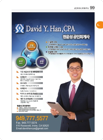 공인회계사.회계사무소 99 949.777.5577 Fax. 949.777.5574 810 Roosevelt, Irvine, CA 92620 Email:davidhancpa@gmail.com