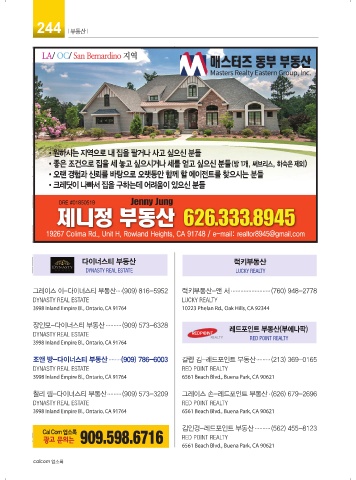 그레이스 이-다이너스티 부동산 (909) 816-5952 럭키부동산-앤 서 ......................... (760) 948-2778