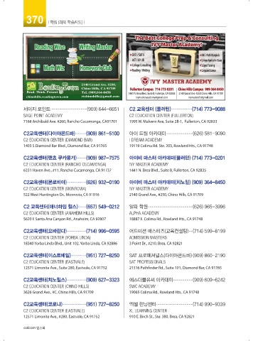 C2교육센터(몬로비아) ................. (626) 932-0190 아이비 마스터 아카데미(치노힐) (909) 364-8450