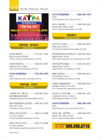 KAYPA 한국문화학교 .................. (714) 782-3079 업랜드 음악학교 ............................ (909) 608-0213