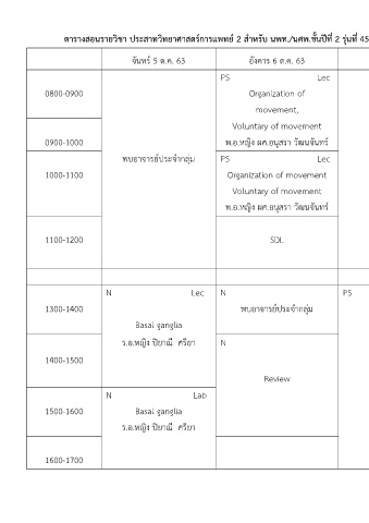 ตำรำงสอนรำยวิชำ ประสำทวิทยำศำสตร์กำรแพทย 2 ส ำหรับ นพท./นศพ.ชั้นปีที่ 2 รุ่นที่ 45 ปีกำรศึกษำ 2563 ภำคกำรศึกษำที่ 1 (ระหว่ำงวันที่ 5 ต.ค. – 9 ต.ค. 63) (สัปดำห์ที่ 17)